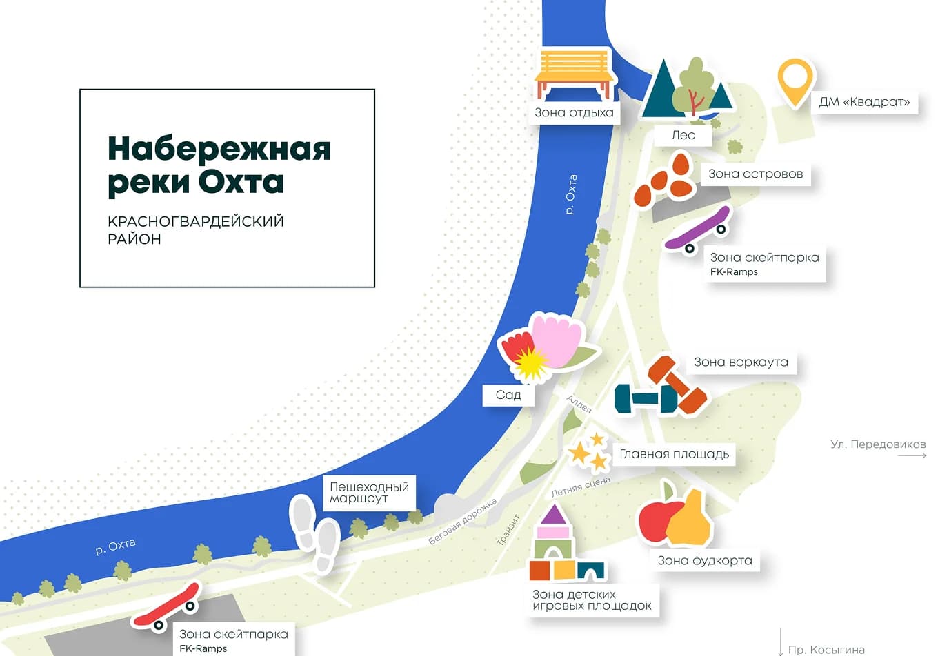 Комплексная реорганизация прибрежной территории для создания современного, многофункционального общественного пространства, гармонично интегрированного в городскую ткань Санкт-Петербурга с бережным отношением к природному ландшафту