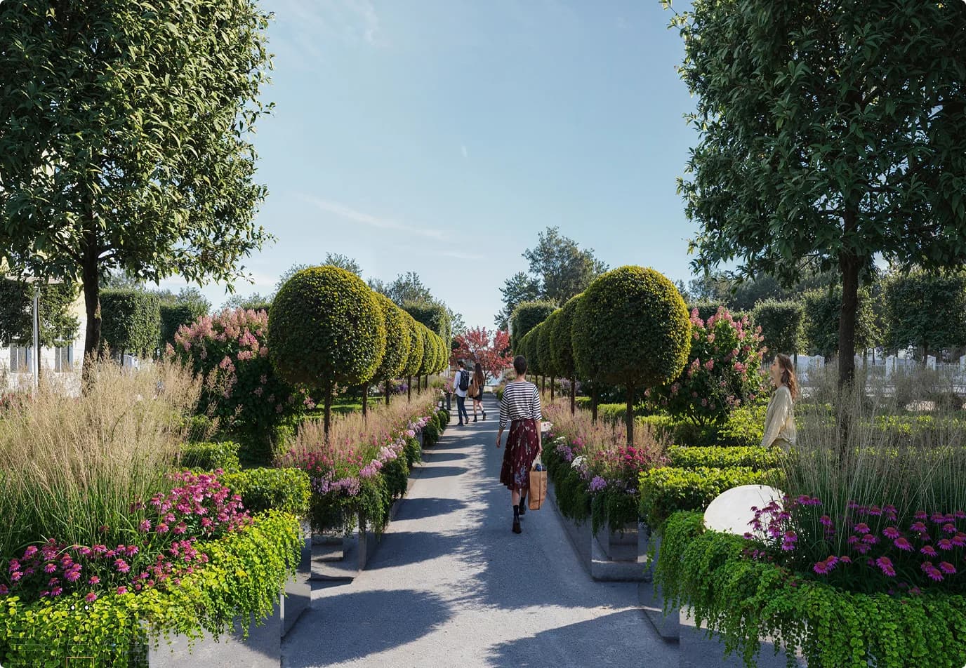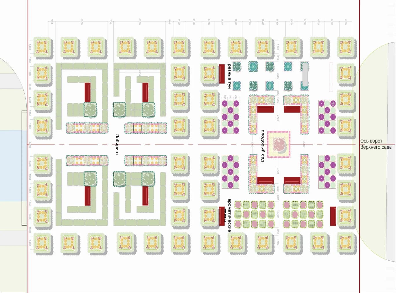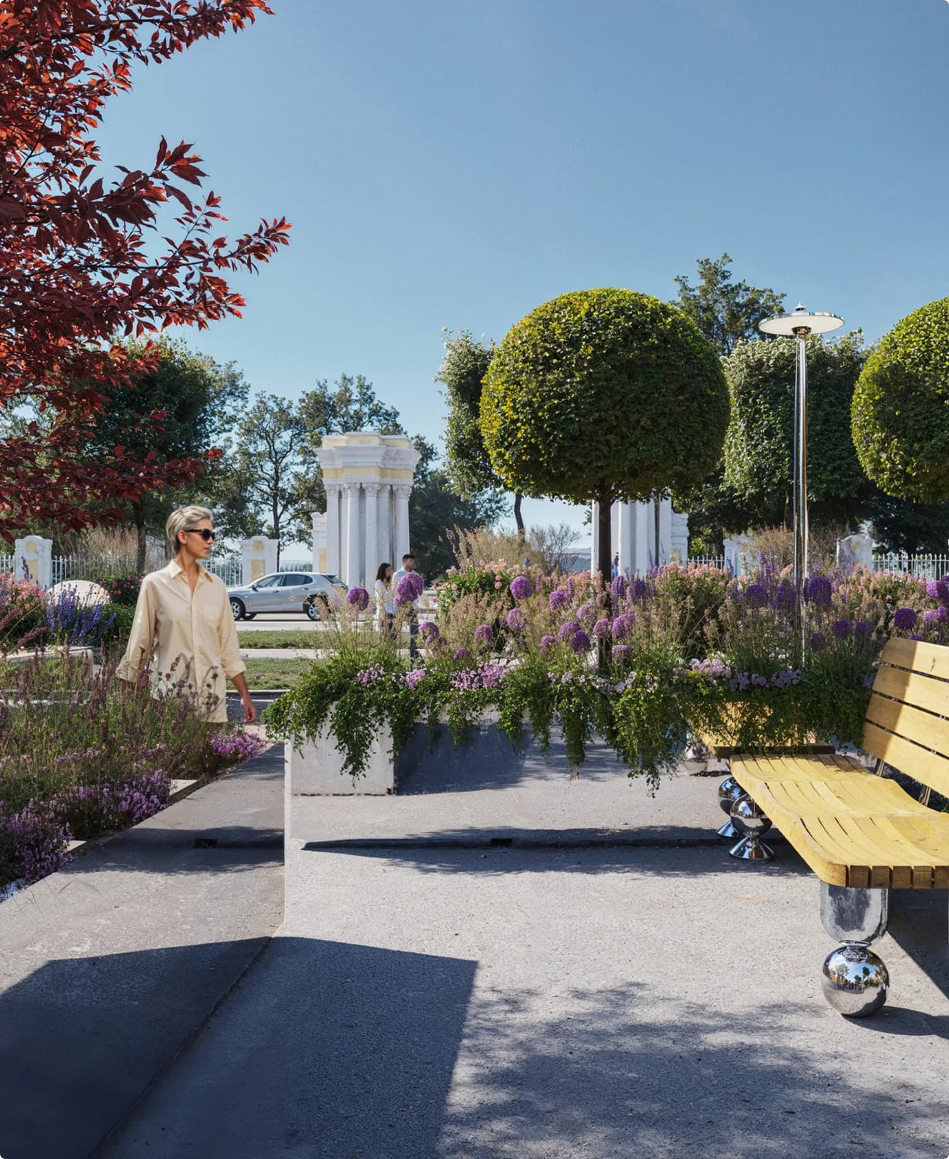 Трансформируемый «Зеленый сад» на месте парковки, воссоздающий дух исторических огородов Петра I