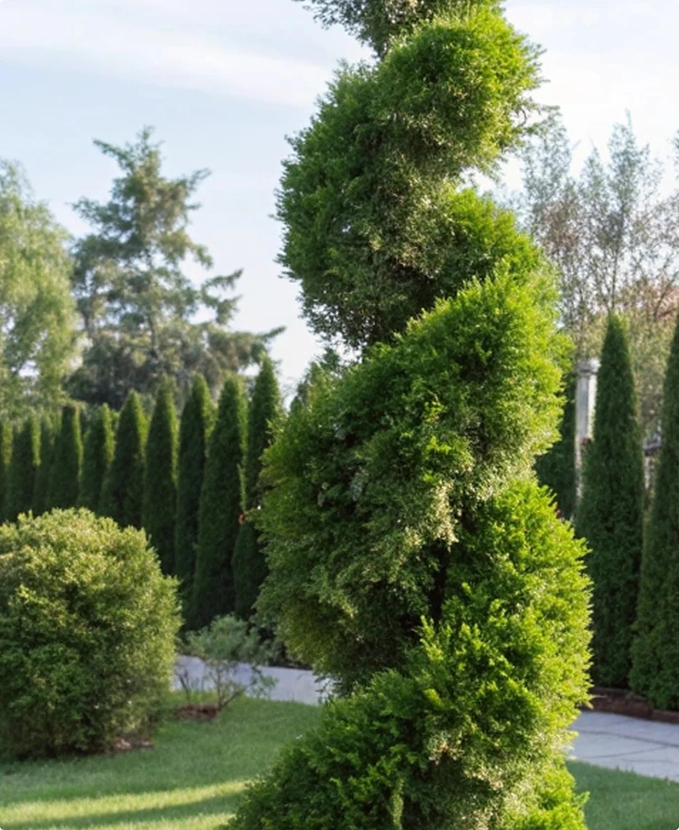 Историко-тематический ассортимент (декоративный лук, вереск, рододендрон, клен «шар», туя «спираль»)