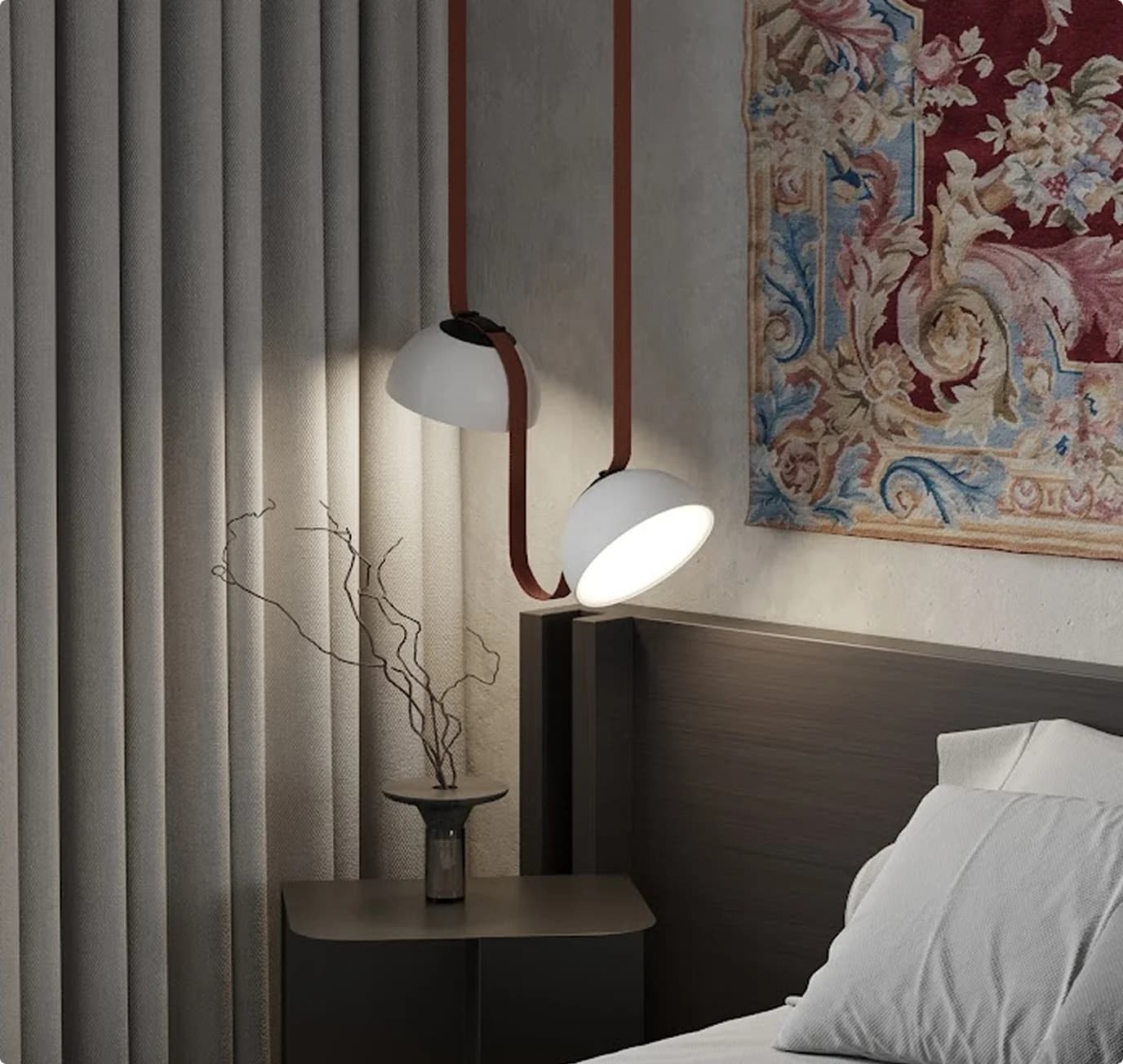 Многоуровневая система (центральный подвесной светильник, настольные лампы, встроенная подсветка)