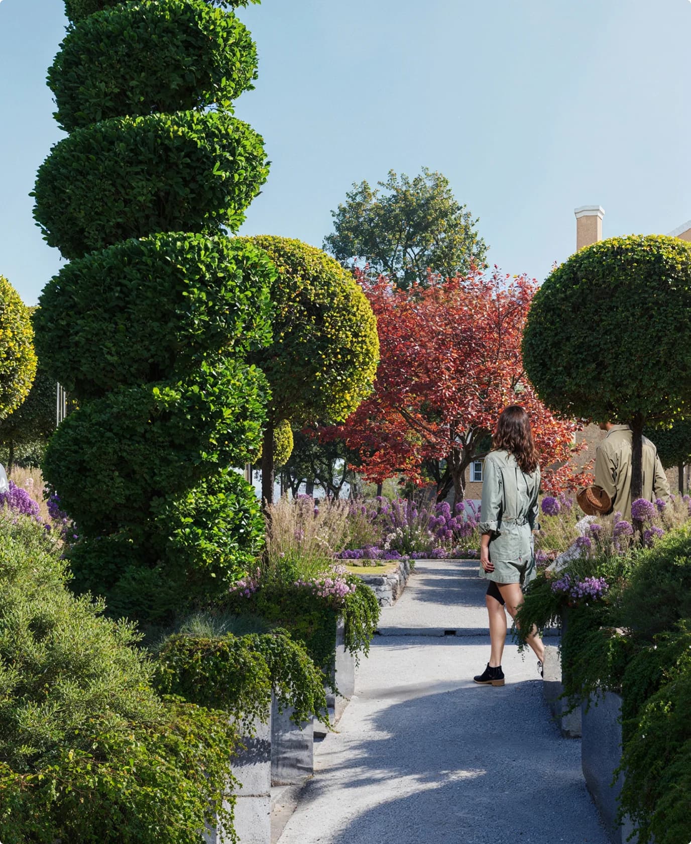 Трансформируемый «Зеленый сад» на месте парковки, воссоздающий дух исторических огородов Петра I