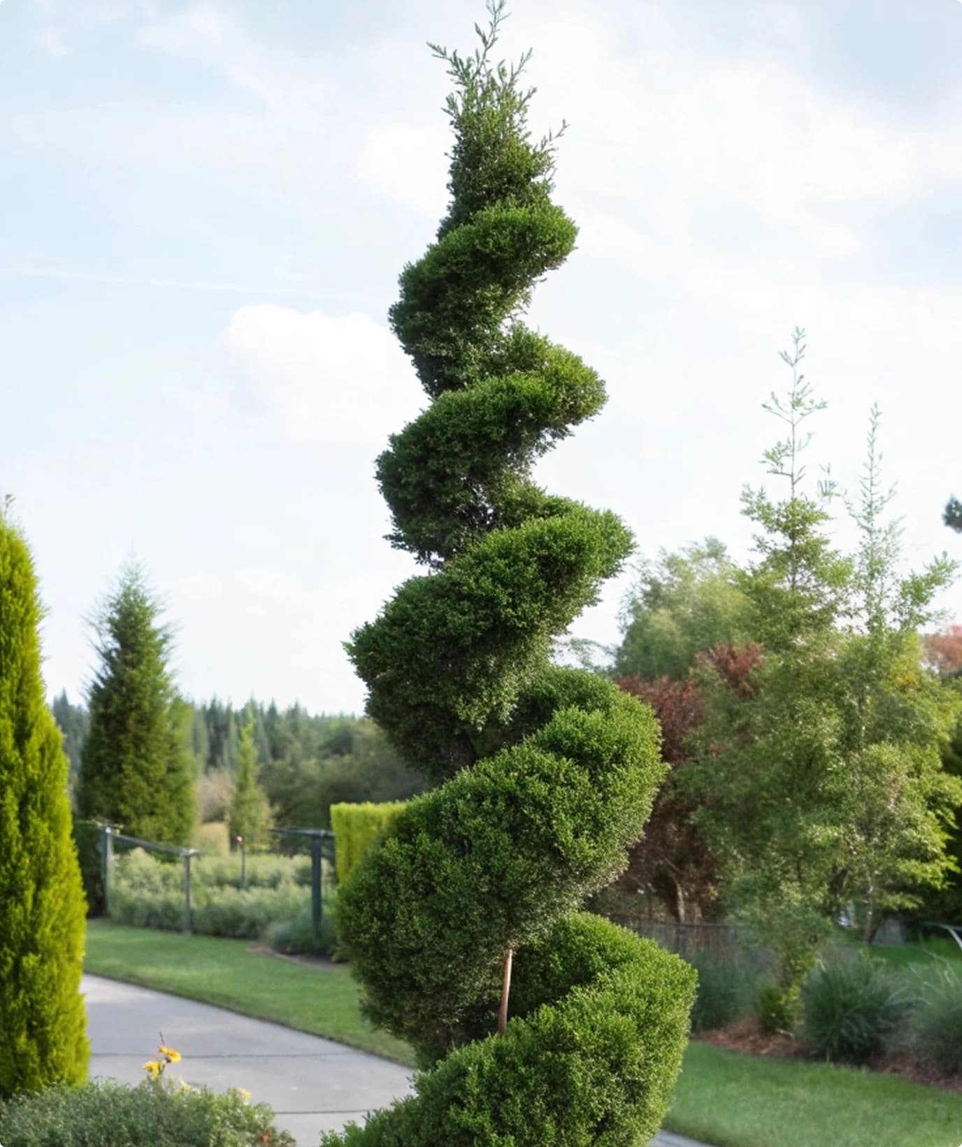 Историко-тематический ассортимент (декоративный лук, вереск, рододендрон, клен «шар», туя «спираль»)